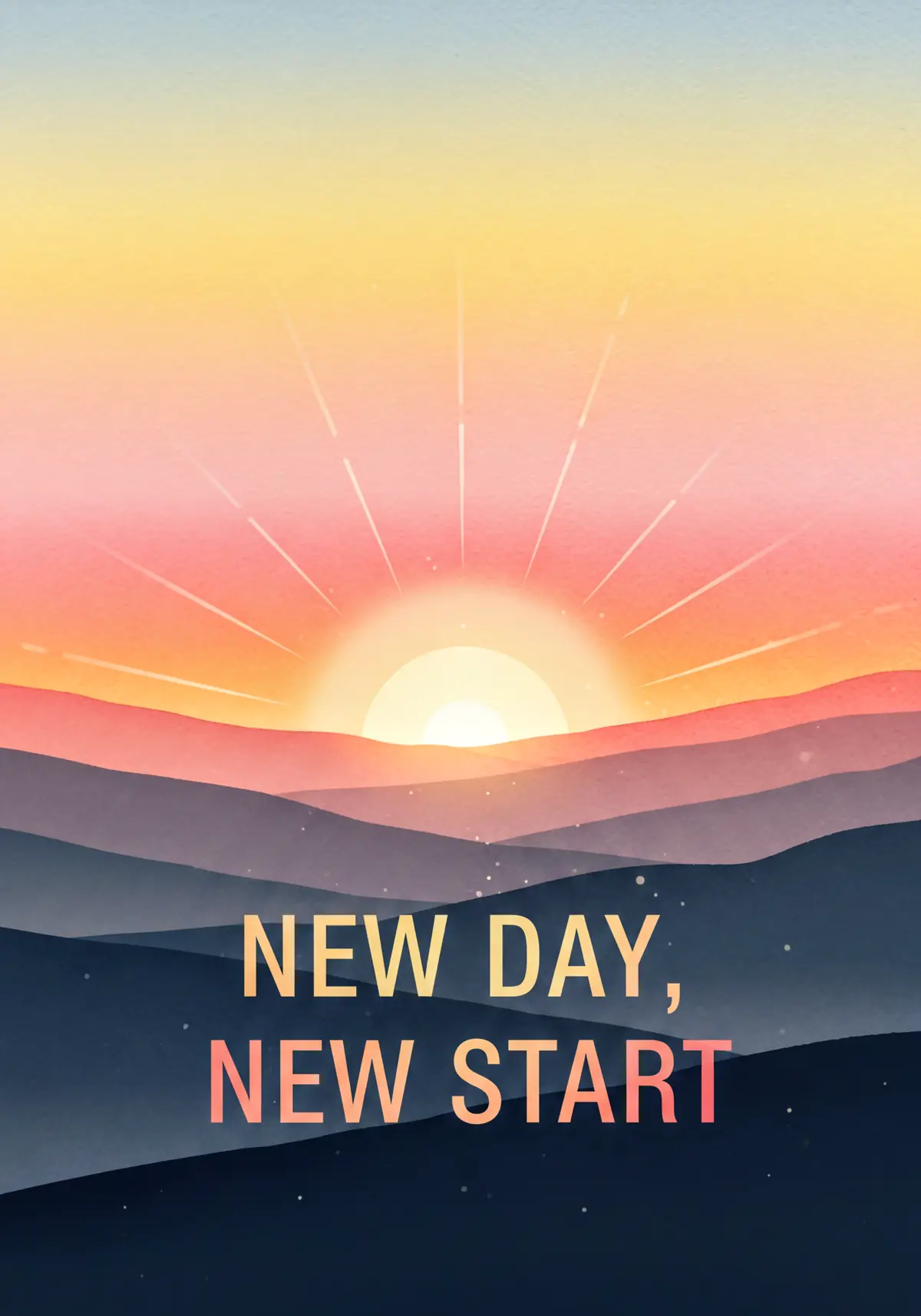 Send a burst of inspiration with this beautiful watercolor sunrise greeting card. The gentle gradients and soft shadows create a sense of peace and optimism, making it perfect for anyone needing a little encouragement. This card is designed to uplift spirits and provide a positive start to the day.
